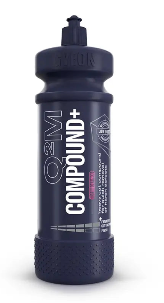 Q²M Compound+ Redefined es un compuesto de corte pesado que ofrece un nivel mejorado de eliminación de rayones y alta abrasión con un bajo nivel de polvo y defectos secundarios reducidos. Aunque debido a su poder de corte deja ligeros hologramas, son fáciles de quitar con una pasada de Q²M Polish.